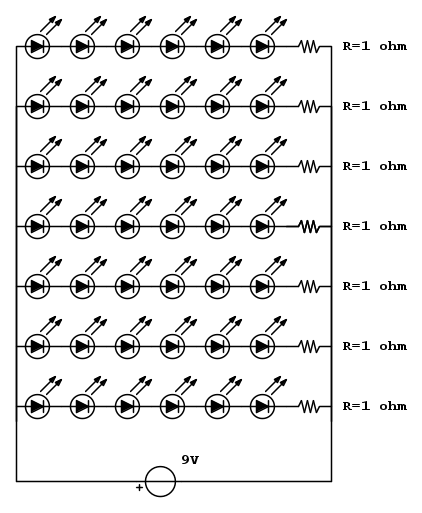 Mettendo 6 file di led in serie e 7 led in parallelo?