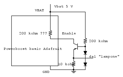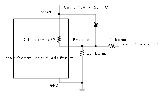 toggio ha scritto: il pin enable del circuito integrato per leggere "high" ha bisogno di 0.8xVBAT quindi questa soluzione non è percorribile