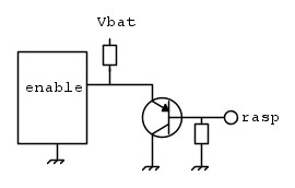 NON RACCOMANDO questo ultimo circuito perche' "alimenta" l'uscita del Raspberry spento con una relativamnete bassa impedenza e relativamente alta corrente (in ogni caso limitata dal parallelo delle due resistenze da 200 kohm) data dall'emettitore del transistor e questo potrebbe *non" essere gradito dal Raspberry - detto in altro modo potrebbe danneggiarsi