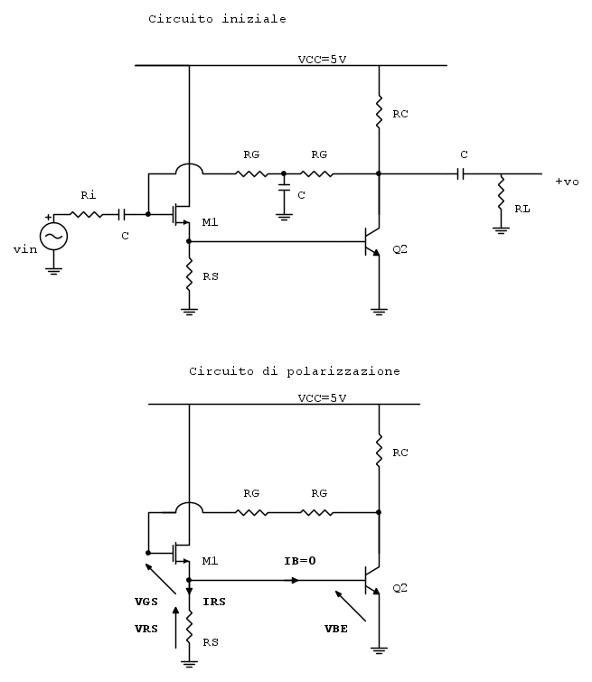 Vi mostro tutti i passaggi a partire dal circuito iniziale e vi mostro il circuito di polarizzazione associato: