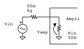 Nel secondo caso invece vai a caricare il generatore con l'impedenza di ingresso dell'amplificatore che è uguale a quella interna del generatore quindi sei proprio nelle condizioni del circuito che ho disegnato in questo post.