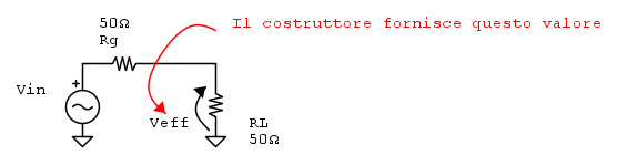 Ma nel primo caso, la Veff che il testo mi dà è la tensione Vin oppure quella sul carico di 50 ohm?