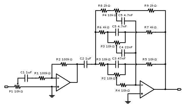 dovrebbe trattarsi di un equalizzatore a 3 bande. Sinceramente non so neanche da dove incominciare l'analisi.