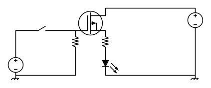 io fino ad oggi ho usato per i miei piccoli circuiti il IRF530 come interruttore, che "chiude" a GND il carico, permettendo l' accensione ad esempio di una lampadina (stiamo parlando di corrente continua).