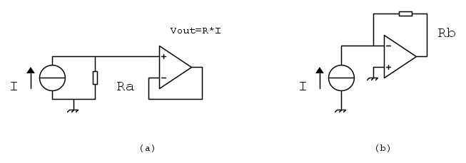 Questi due circuiti entrambi convertono una corrente in una tensione sfruttando la legge di Ohm, che vantaggi ci sono su uno rispetto all'altro?