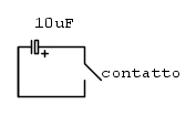 chiudendo il contatto si ha un corto circuito,ma la resistenza non sarà mai zero perche nel filo e nel contatto stesso è presente una pur minima resistenza,supponiamo che complessivamente sia di 0,1 ohm(correggetemi se sbaglio);al condensatore da 10uF per scaricarsi ci vuole un tempo pari ad :T=RxC quindi 0,1x10/1000000=1 milionesimo di secondo;per creare danni ad un contatto di solito costituito da rame o da ottone,la corrente deve creare delle perlinature ,cioè fondere parte del metallo di cui è composto il contatto,domanda: la corrente ha tempo sufficiente per fare cio?