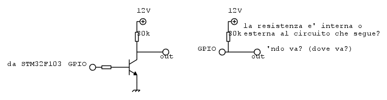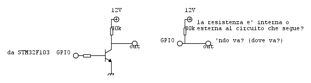 secondo voi posso sostituire il circuito A con quello B? Il carico assorbe circa 12uA. Risparmierei voletnieri l'uso dei BJT se potessi. Sto usando un STM32F103. La soluzione BJT è testata e funzionante-