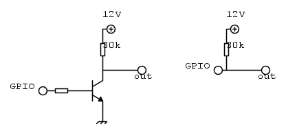 Quando l'uscita deve essere alta, poterei il pin ad alta impedenza, quando l'uscita deve essere bassa porterei il pin a GND. Le tensioni credo non siano tollerate dal micro, ma le correnti sono talmente basse che potrebbe funzionare. Che ne pensate?