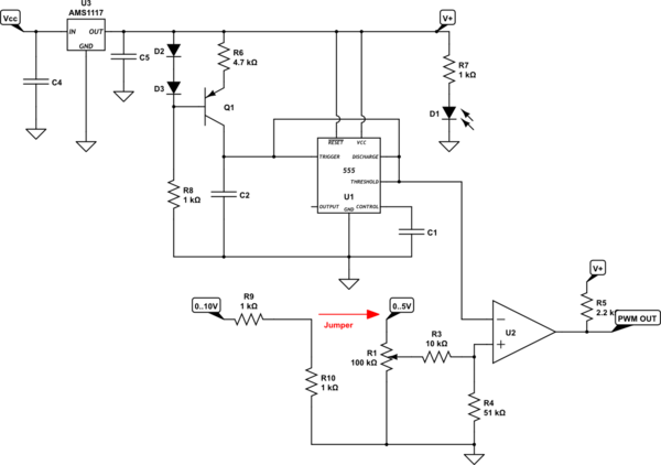 Ciao a tutti, dovendo regolare l'intensità di luce di un led vorrei realizzare un circuito tipo questo però con componenti reperibili. Potreste darmi un aiuto su come si potrebbe dimensionare? Guardando il circuito è presente un generatore di segnali a rampa. Di sicuro quel transistor non lo trovo, così ho pensato di cercare uno schema un po più accessibile tipo questo. Come transistor ho a disposizione un bc807, in che modo posso dimensionare la rete resistiva? Ho fatto una prova a fare qualche calcolo, ma mi risulta un partitore con resistenze molto elevate e facendo la prova a misurare la corrente di corto circuito il valore risulta circa la metà di quello calcolato...