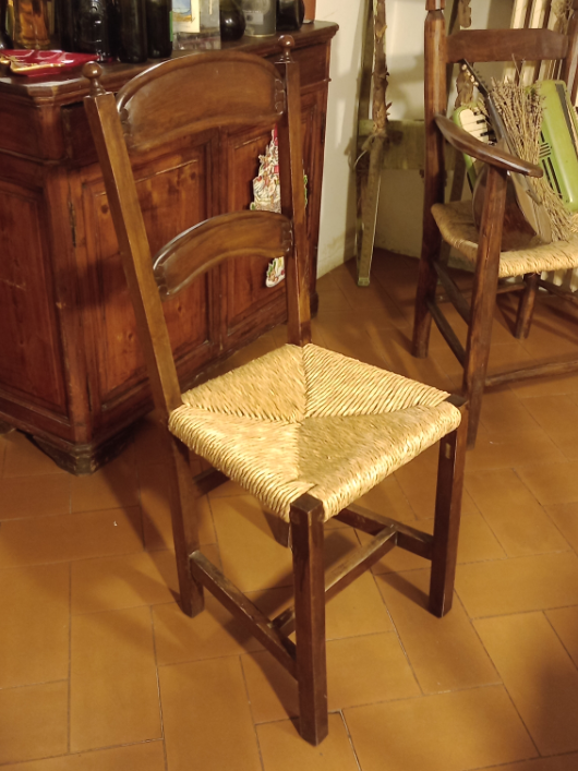 questa è la sedia, non è particolarmente pregiata; sono d'accordo che un buon restauro sia fatto usando gli stessi materiali dell'epoca, ma le colle di origine animale mi fanno senso e a me interessa solo la rimessa in servizio