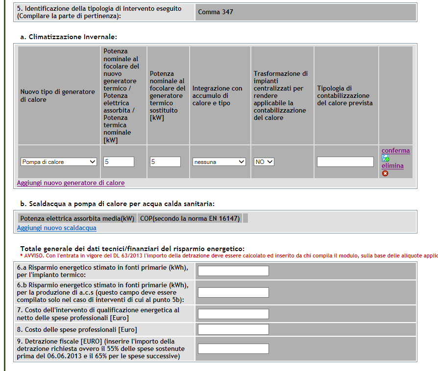 Scusa ma non mi trovo. Non mi tornano i punti che citi. Stai compilando l'allegato E e come tipologia di intervento hai indicato il comma 347? Perché se è così a me risulta che il punto 6 riguarda il risparmio energetico.