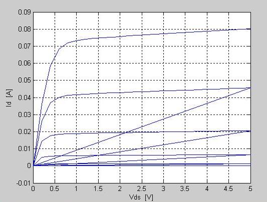 Così generi due matrici di 26 righe in cui ad ogni colonna corrisponde una curva tracciata per un diverso valore della tensione gate-source. Per fare il grafico, poi: