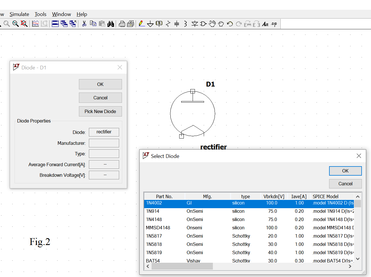 Vado in MISC,seleziono "rectifier" ma poi mi obbliga a selezionare un diodo normale senza possibilità di inserire la specifica(che ho) nel disegno. Come risolvo?