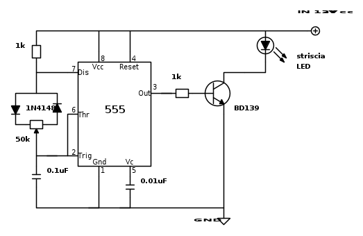 Un condensatore da 4.7-10uF sulle alimentazioni del 555 non guasta mai