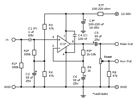 Candy ha scritto: Vista la presenza del potenziometro VR1, ha ancora senso di esistere la resistenza R7? E' collegata correttamente? Collegata in questo modo rende la regolazione del potenziometro non più lineare...