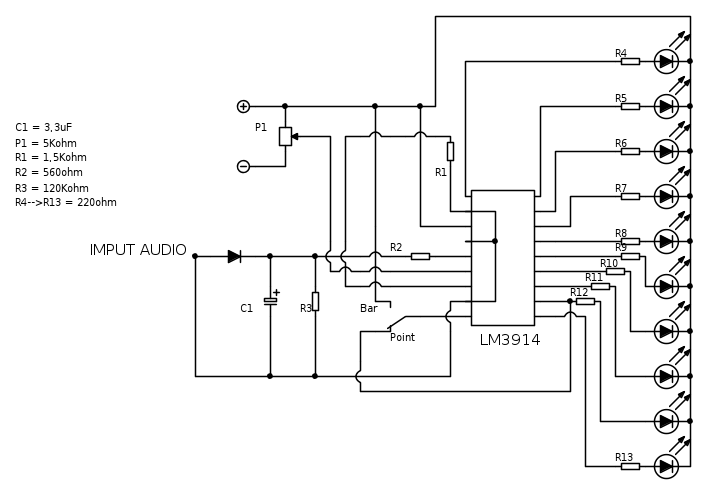 I casi sono due: o realizzi due VUMeter (uno per canale) o ti accontenti di adoperarne uno soltanto mettendo L o R come input ed il comune alla massa del VUMeter.