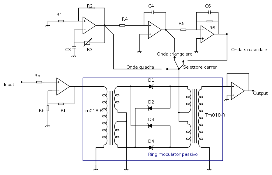 La nostra attenzione è ricaduta si di un ring modulator passivo e non-lineare il cui funzionamento non mi è per niente chiaro e vorrei a tal proposito qualche dritta per capirci qualcosa in più.