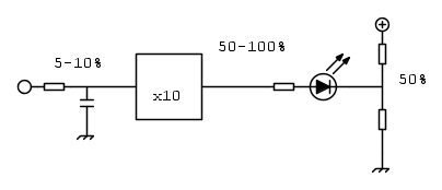 * moltiplicherei per 10 mediante un amplificatore operazionale, ottenendo una tensione tra 50% e 100%