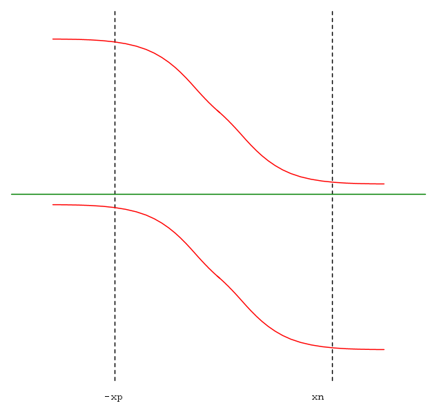 Lo pseudo potenziale, che ricordiamo era piatto per il portatore maggioritario nella R.Q.N., resta circa costante anche nella regione svuotata.