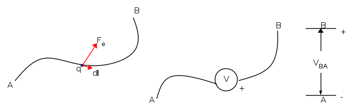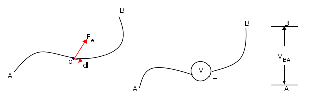 L'evidenza sperimentale ottenuta tramite il voltmetro e le equazioni di Maxwell, ci permettono di affermare che la tensione dipende solo dagli estremi AB considerati, cioe' il lavoro compiuto da una sorgente per spostare una carica elettrica elementare in un campo elettrico fra due punti lungo una generica traiettoria e' un