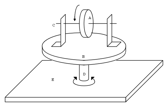 Secondo me l'asse D vincolato al piano E, quindi non più in grado di girare, produrrebbe su di esso una coppia orientata in senso inverso rispetto al verso di rotazione della terra.