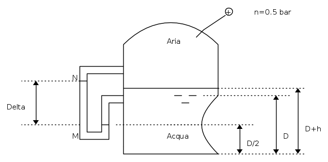 La quota D/2 si riferisce al meato del manometro di mercurio a contatto con l'acqua.