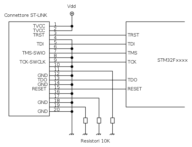 Trovi le indicazioni nel datasheet del ST-LINK.