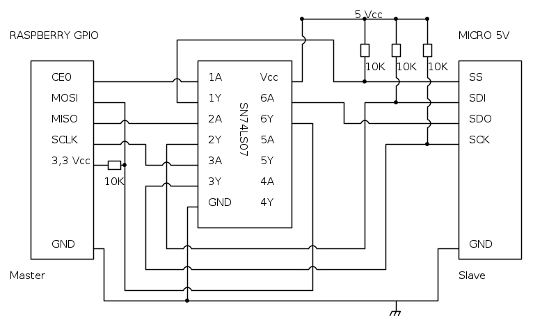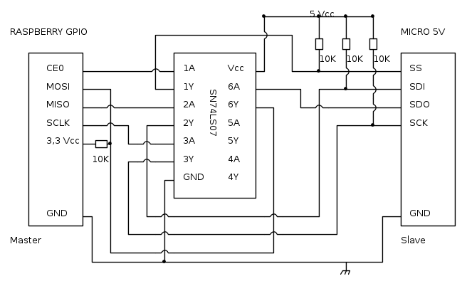 In pratica con il segnale nel pin input (A) del SN74 ed esco con il pin output (Y) al quale collego una resistenza di pull-up alla tensione che sopporta chi deve leggere?