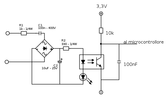 non sono abituato ad interfacciare i microcontrollori con la rete di casa a 230V, ora però ne ho la necessità.