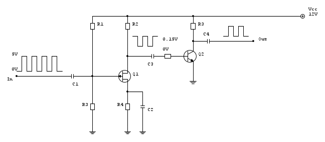 Come si vede dallo schema il segnale d'ingresso è un segnale rettangolare con ampiezza massima di 5 volt.