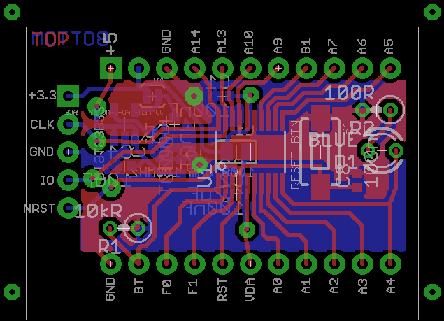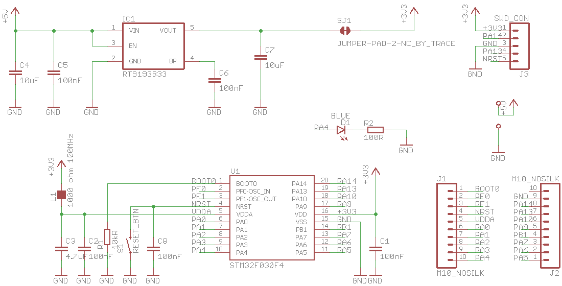 Una sola osservazione: per il collegamento SWI avresti potuto tenere la stessa pedinatura del modulo con STM32F103C8T6 in modo da utilizzare un solo cavetto.