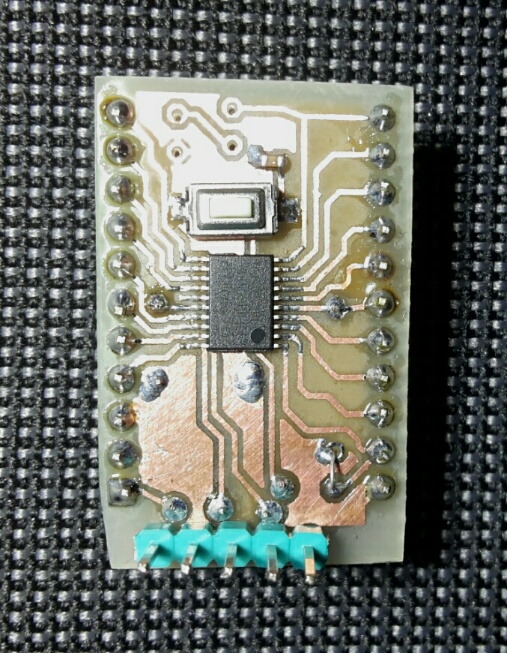 il PCB è a doppia faccia realizzato con il metodo del toner transfer.