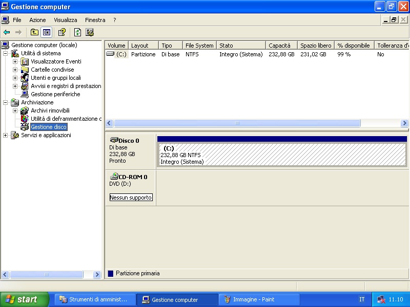 Su 250 Gb nominali C: è 232,88 Gb NTSF integro (sistema) con striscia blu che corrisponde a partizione primaria, NON C'E' il quadratino nero con la scritta spazio non allocato (forse non c'entra nulla) ho provatato a fare click a destra e a manca ma non risolvo nulla, ho anche provato ad usare il comando DISKPART... o forse non l'ho saputo usare....