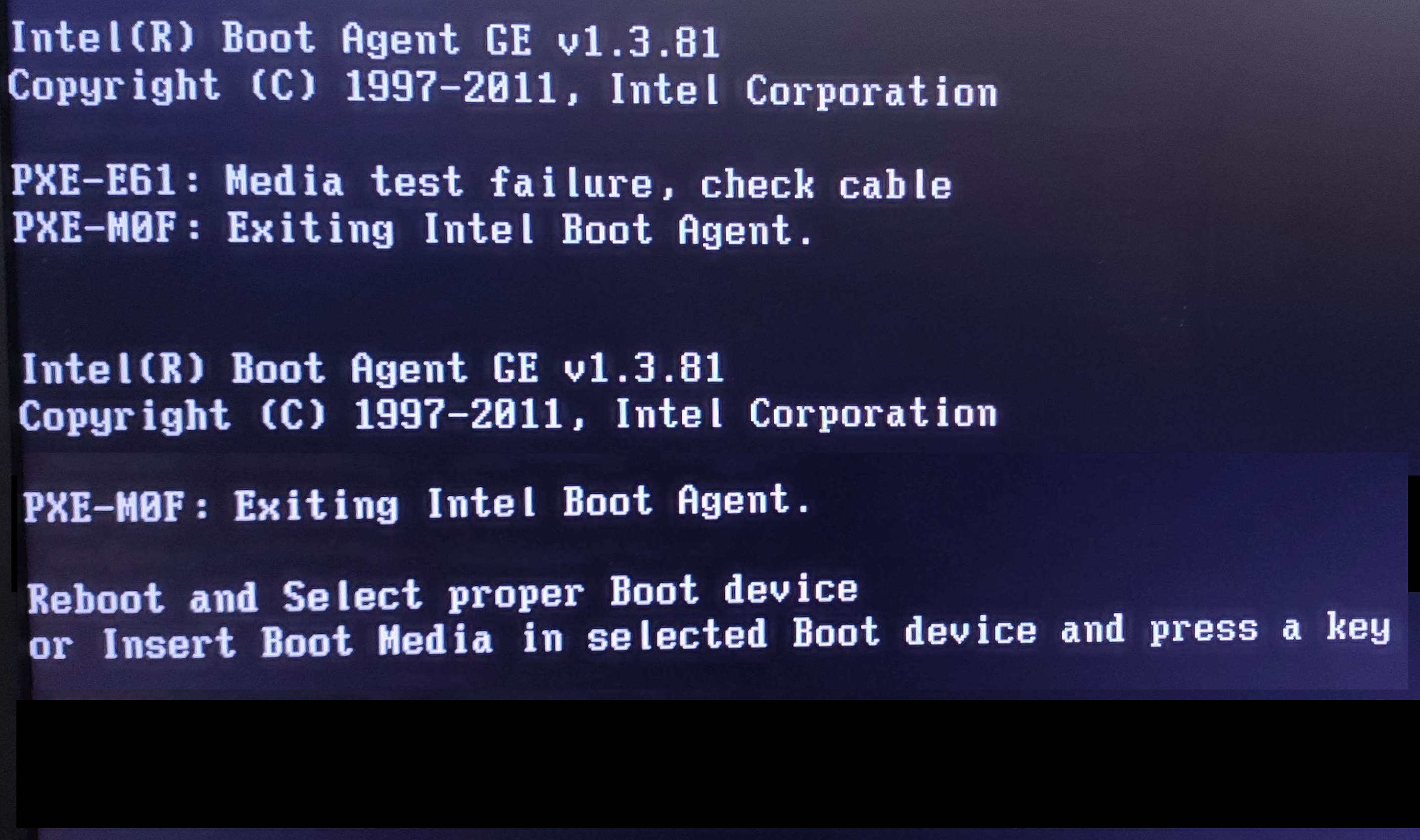 Stai tentando di fare il boot dalla scheda di rete. Nel bios devi disabilitare PXE