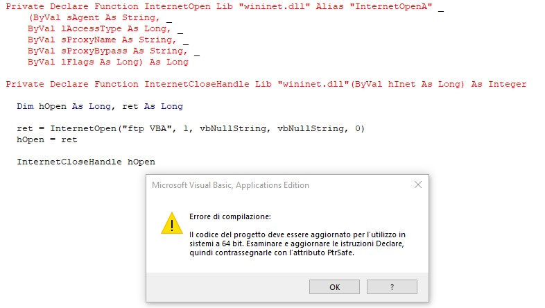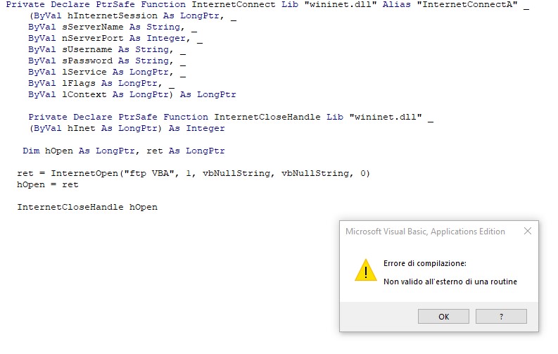 mi da errore su "ftp VBA".