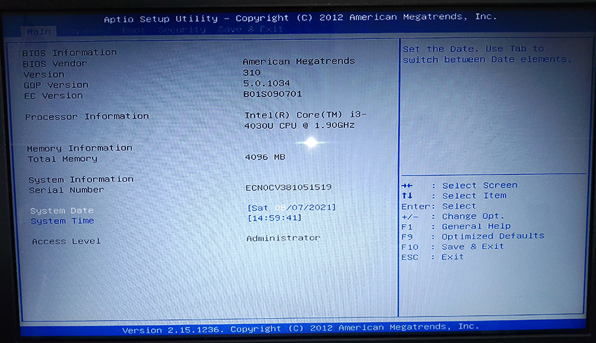 Riavvio e premo F2 per entrare nella Bios, carico i parametri di default, salvo ed esco.