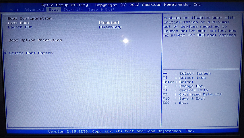 Prova a disabilitare sia il fast boot che il secure boot. Dopo di che il disco deve essere bootabile (avere un boot sector, oppure una partizione EFI con bootloader se partizionato GPT, ma essendo del 2012 suppongo di no). In sostanza cosa usi per fare il boot? Il disco originale? Un altro disco con installato cosa? Da una versione live su chiavetta parte?