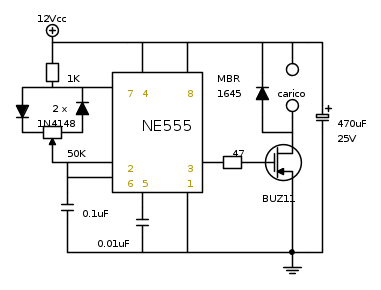 se li metto superiori cambia qualcosa ? perché ne ho 2 da 100 uf . Io per l'alimentazione 12 V ho una pila piccola e non penso che arrivi ad erogare 1 A . Cosa mi consigliate ?Avevo uno schema di PWM ma non lo trovo più mi sapreste dare una mano ?