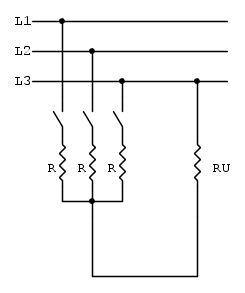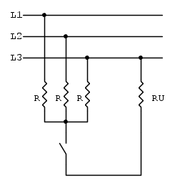 ''L'unica possibilità sarebbe quella di inserirle insieme al carico, con un interruttore tripolare. In tal caso le resistenze d'esempio potrebbero essere dimensionate per una corrente pari ad un terzo di quella del carico, 3,33 A nel caso d'esempio, e la potenza dissipata da ognuna sarebbe 2.97*3,332=32.5 W.''