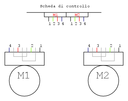 Il motore ha un connettore ad 8 poli, 4 arrivano dal cablagio principale e altri 4 sono ponticellati tra loro.