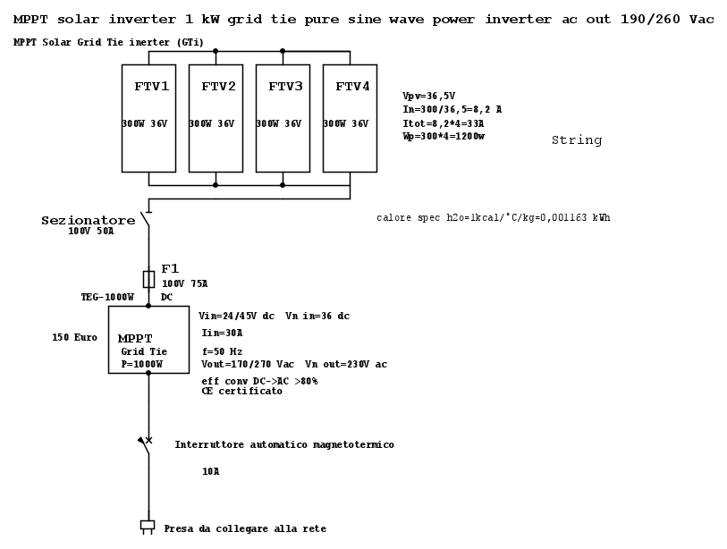 E' un sistema MPPT lato ingresso 36V dc e inverter lato uscita 230V ac seno puro.