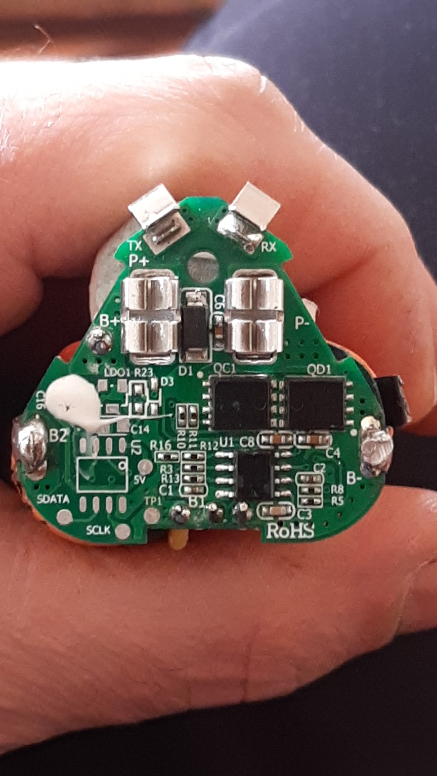 In rete di trovano diversi schede BMS e a parte le dimensioni ( si può prendere più piccolo per rispettare i denti dell'originale...) e i vari B1, B2, B- .. che si possono collegare con cavo e portali dove servono il problema principale e che hanno il P+ e P- invertiti... come questo che posto:
