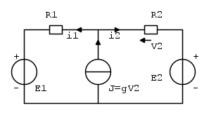 Un'altra cosa, per quanto riguarda il generatore di corrente, facendo J=g*R2*i2 ottengo un risultato, tuttavia l'equazione g*R2*i2' = i1+i2 non è soddisfatta, quindi c'è qualcosa che non va. Ho sbagliato qualcosa nel procedimento?