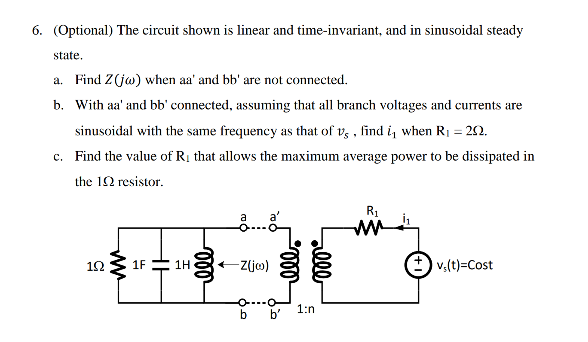 Il circuito in figura è lineare tempo-invariante ed in regime sinusoidale.