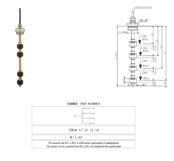 ogni galleggiante ha una determinata corsa, per metà di essa avrai il relativo contatto chiuso o aperto (dipende da come orienti il galleggiante) mentre per l'altra metà l'avrai invertito.