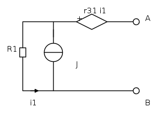 Allora applico un generatore di corrente ideale da 1J ai morsetti A e B .