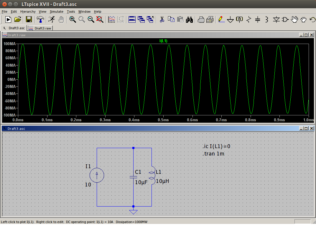 Ho un dubbio circa la simulazione di un semplice circuito LC alimentato con un generatore di corrente continua effettuata con LTSpice.