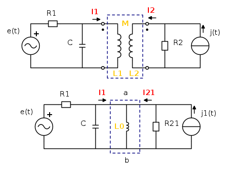 Invece il motivo c'e' in quanto quell'induttore, che per convenienza ho rinominato L0, non e' che una parte del circuito equivalente del mutuo induttore che fa uso del trasformatore ideale; pur avendo riportato tutto al primario e di conseguenza avere eliminato il trasformatore stesso, le correnti utili sono sempre quelle longitudinali, e non quella trasversale su L0!