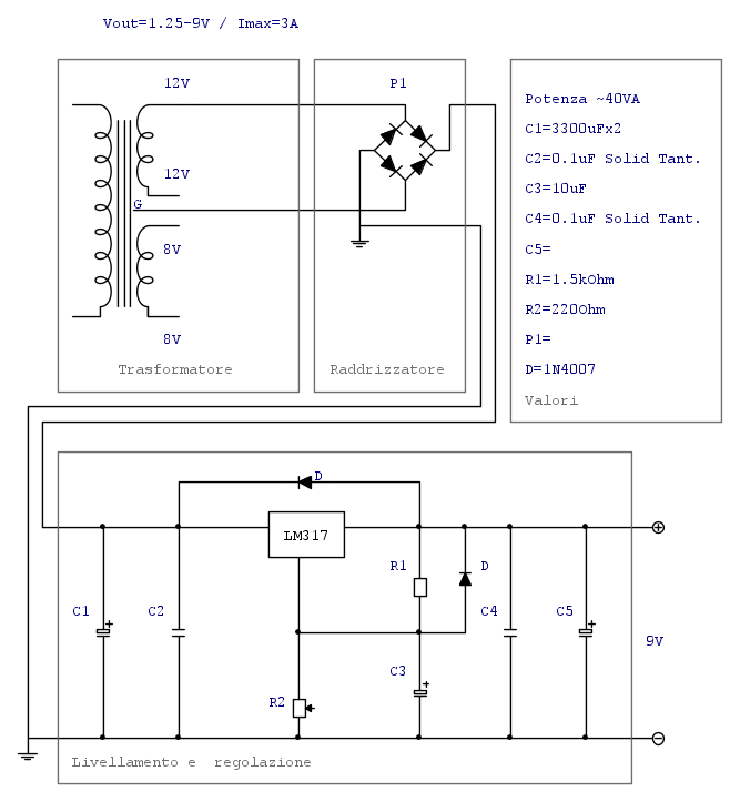Diciamo che vorrei realizzare un alimentatore che mi possa fornire le tensioni più comuni 3 V, 4,5 V, 5 V, 9 V, 12 V. marco438 ha scritto:Non so come tu abbia valutato la potenza del trasformatore (e sinceramente non ho il tempo di fare conti); mi piacerebbe pero' vedere come sei arrivato al risultato esposto.