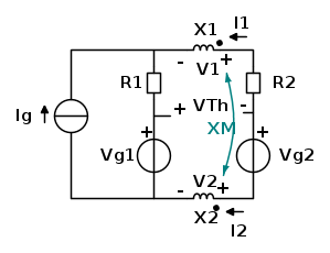 Edit Si può poi (per esempio) usare un GIC forzante unitario per ricavare, dopo aver "spento" i generatori indipendenti, la ZTh dalla VJ ai suoi morsetti; in questo caso, le equazioni costitutive del doppio bipolo induttore si semplificano grazie alla